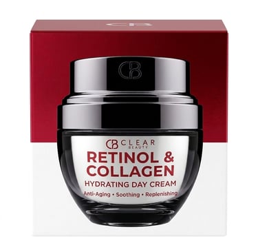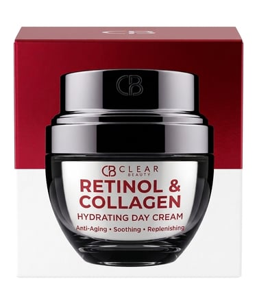 La crema/sérum Clear Beauty con Retinol y Colágenoes un tratamiento antienvejecimiento reafirmante diseñado para rostro y cuello. Combina retinol para la renovación celular y colágeno para mejorar la elasticidad, reduciendo arrugas y líneas finas. Es una marca hipoalergénica, libre de crueldad animal y parabenos, ideal para una rutina de noche.